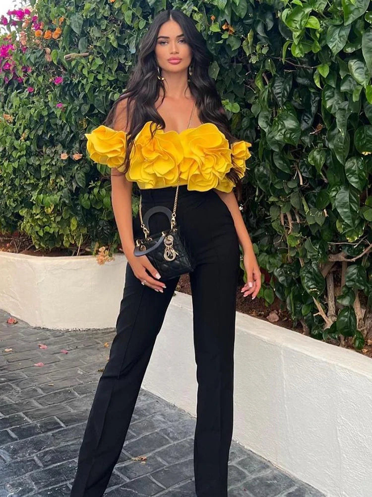 Minimalist yet sophisticated, this strapless one-piece swimsuit in a solid tone exudes modern elegance. With its clean lines and sleek silhouette, it's the perfect piece for a refined, high-end beach look.