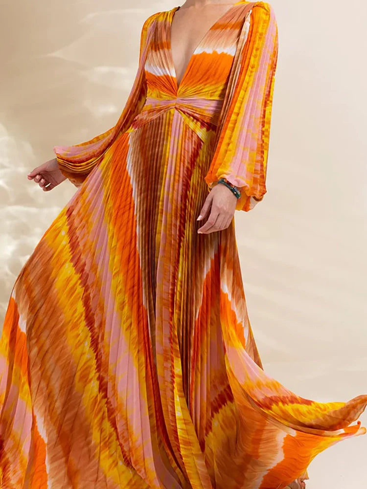 Designed for the modern beach lover, this V-neck long sleeve one-piece swimsuit features vibrant tropical prints and a sleek silhouette. The perfect mix of sun protection and style, it’s made for scenic seaside escapes.