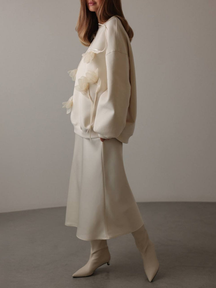 This artistically designed sweatshirt features delicate 3D floral embellishments and a relaxed fit for ultimate comfort. The unique Instagram-worthy design stands out with its handmade details, making it perfect for casual outings, gatherings, or creating stylish content. Crafted from premium cotton blend fabric, it offers both warmth and style for the cooler seasons.