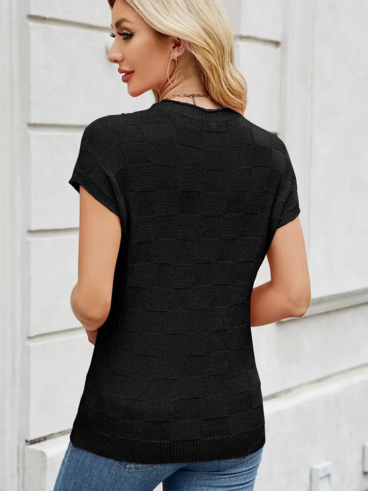 This stylish sweater features a charming small checkered pattern, adding a touch of classic elegance to a casual knit design. Perfect for the spring and summer seasons, it's made from soft, breathable fabric that keeps you comfortable while looking chic. A versatile piece that pairs well with various outfits for effortless style.