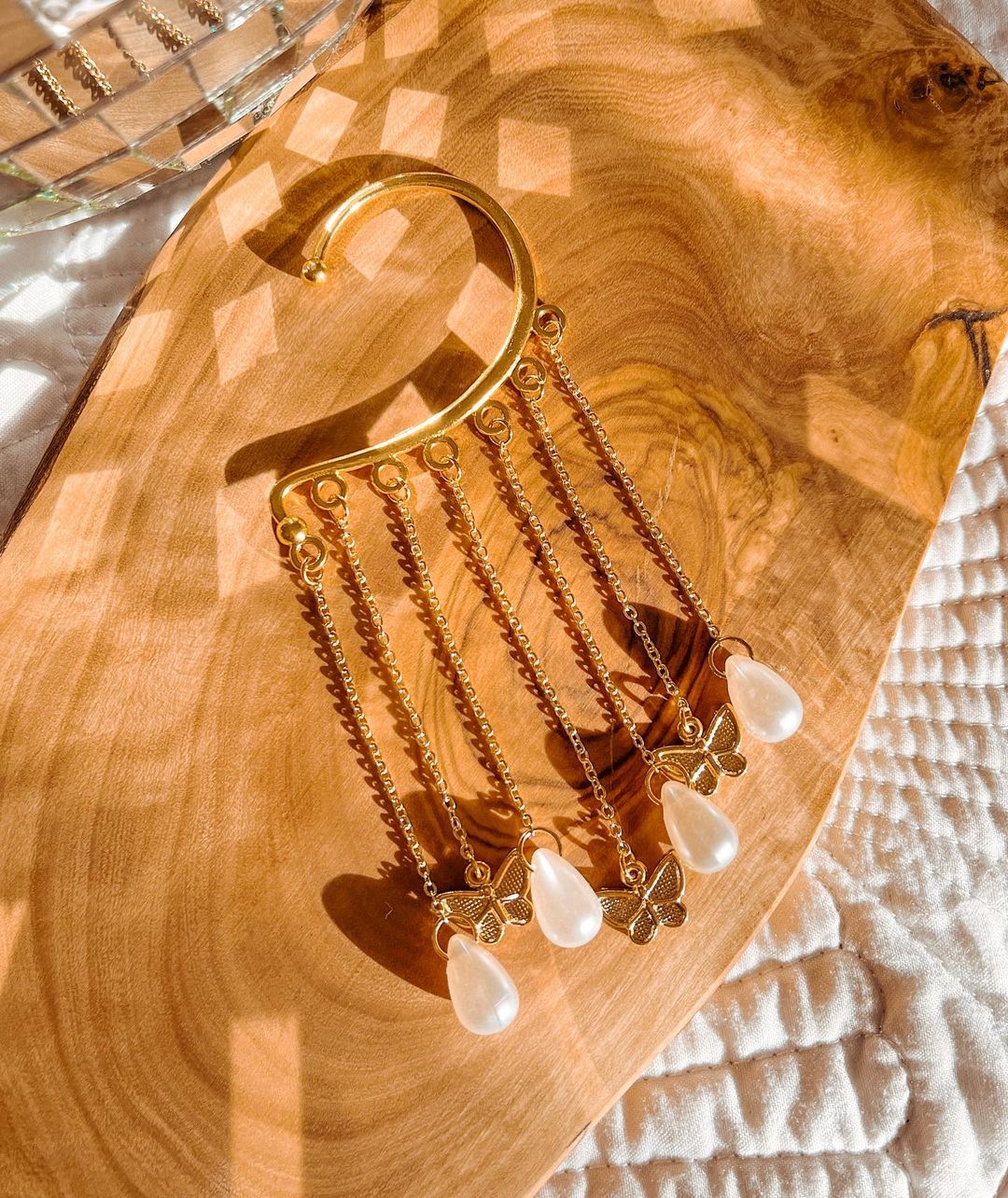 Moon & Star Crystal Tear Drops Ear Cuffs