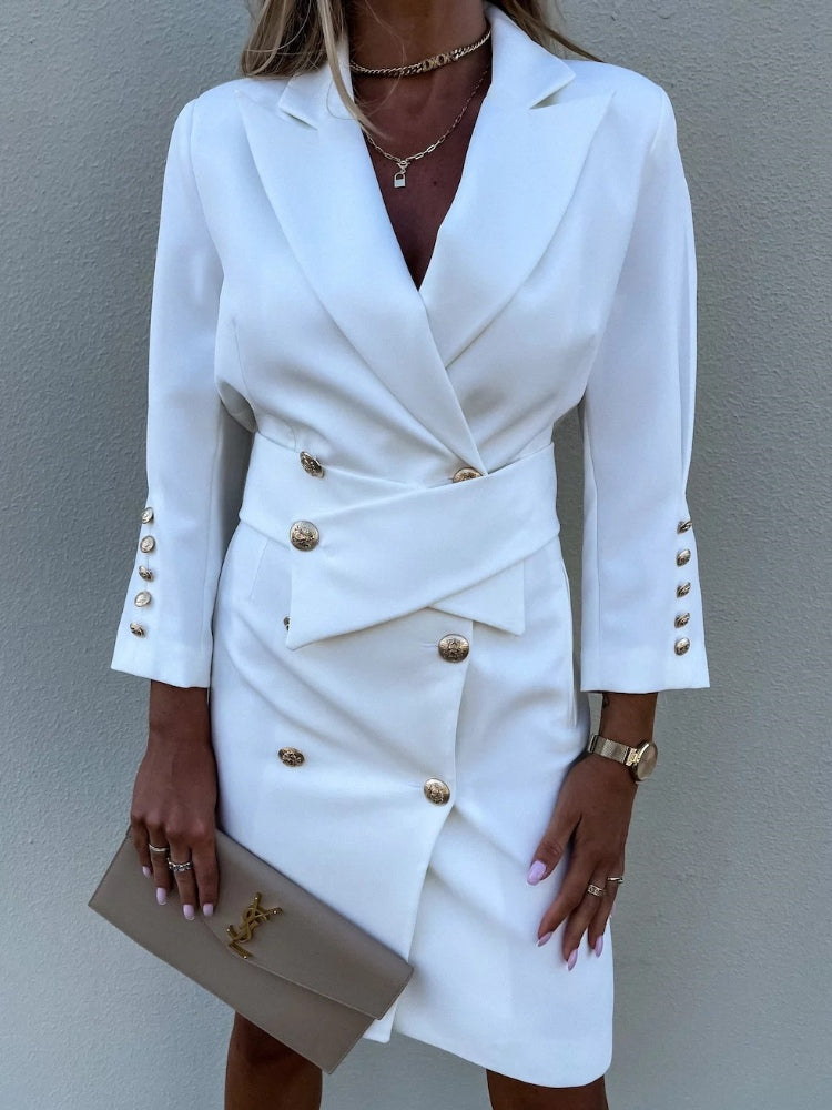 This sleek, double-breasted blazer with a sharp suit collar creates a flattering, slim silhouette perfect for any occasion. Designed in an on-trend ins-style, it combines sophistication with modern chic, easily elevating both casual and formal outfits. A must-have for those who appreciate timeless elegance with a fashion-forward twist.