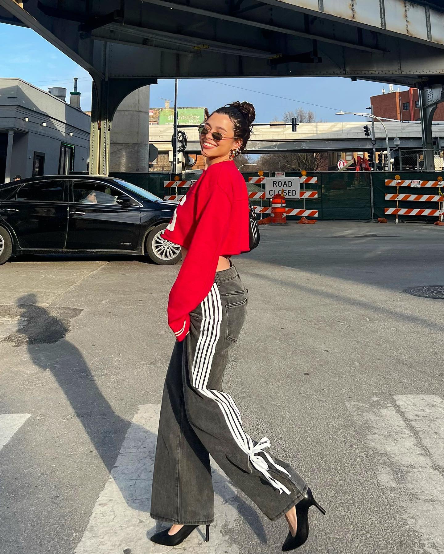 Low Waist Loose Side Striped Bow Wide-Leg Jeans