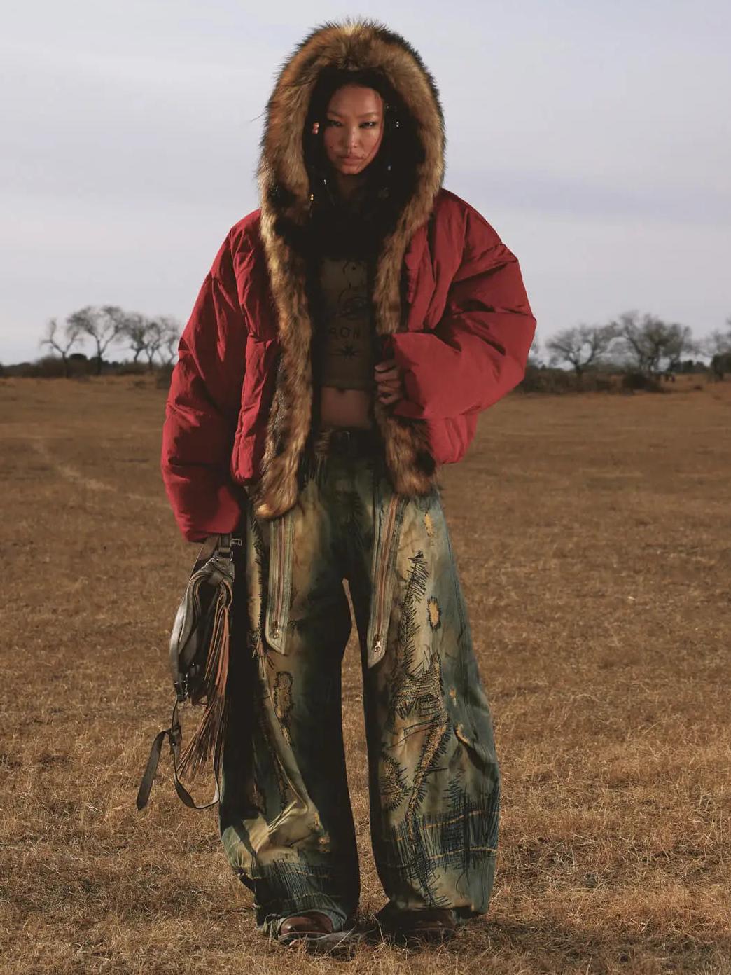 •  Washed Fray Fabric & Perforated Waistband:Distressed wash and grommeted belt loops elevate the design with texture and edge.