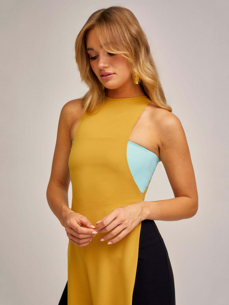 • Round Neck Sleeveless Bodice: Clean and structured, offering a modern silhouette while keeping the look fresh and easy for warm days.