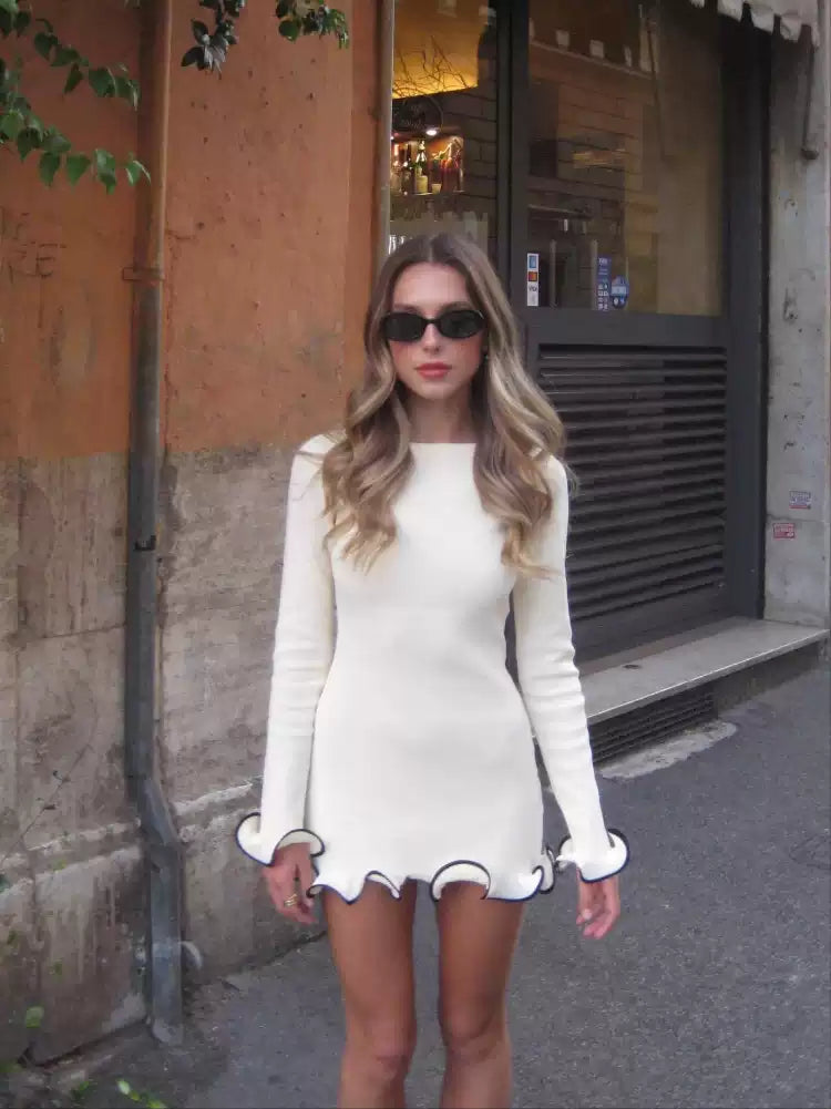Ruffled Long Sleeve Ball Gown