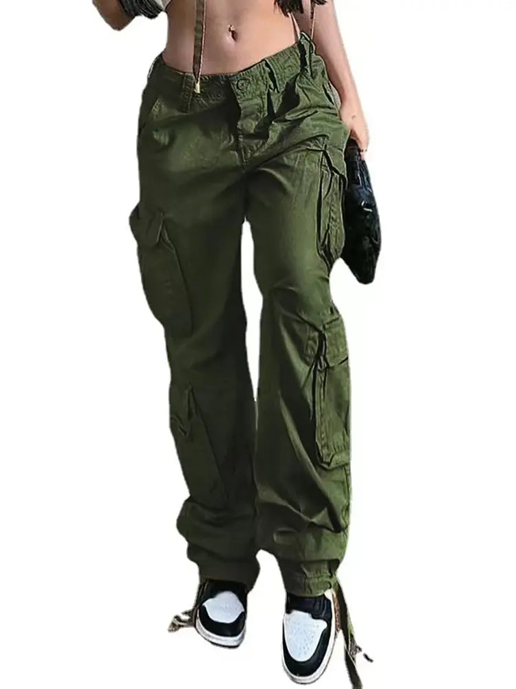 These street-style low-rise denim cargo pants bring a trendy, laid-back vibe to your wardrobe. Designed with a relaxed fit and utility pockets, they embody the essence of streetwear and hip-hop fashion.