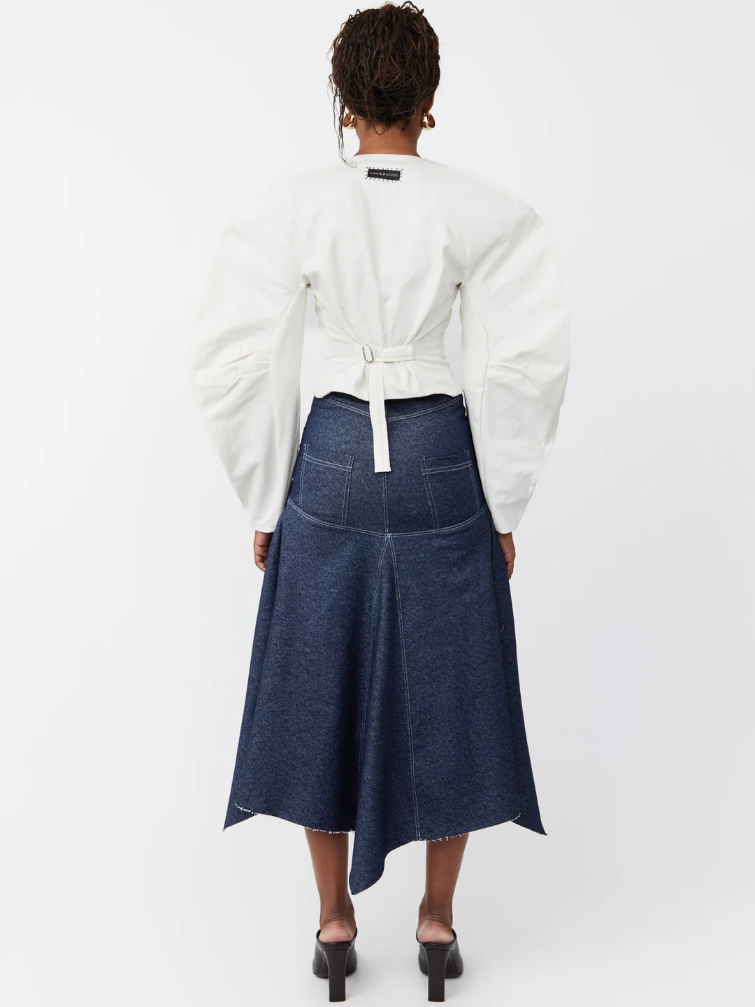 A versatile piece that pairs effortlessly with tailored trousers or high-waisted skirts, this blouse is all about modern elegance with a touch of drama.