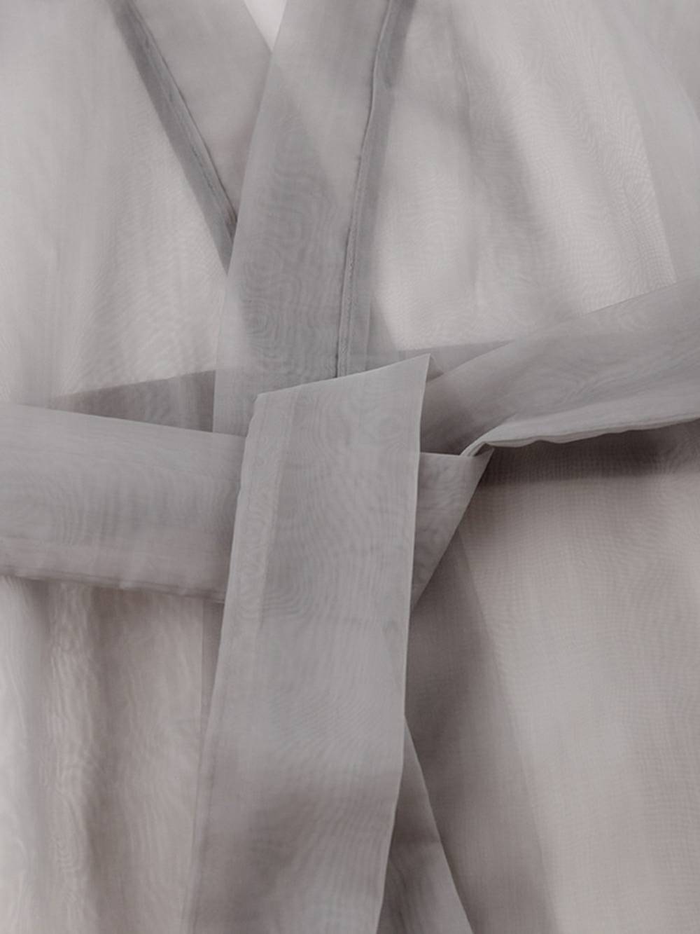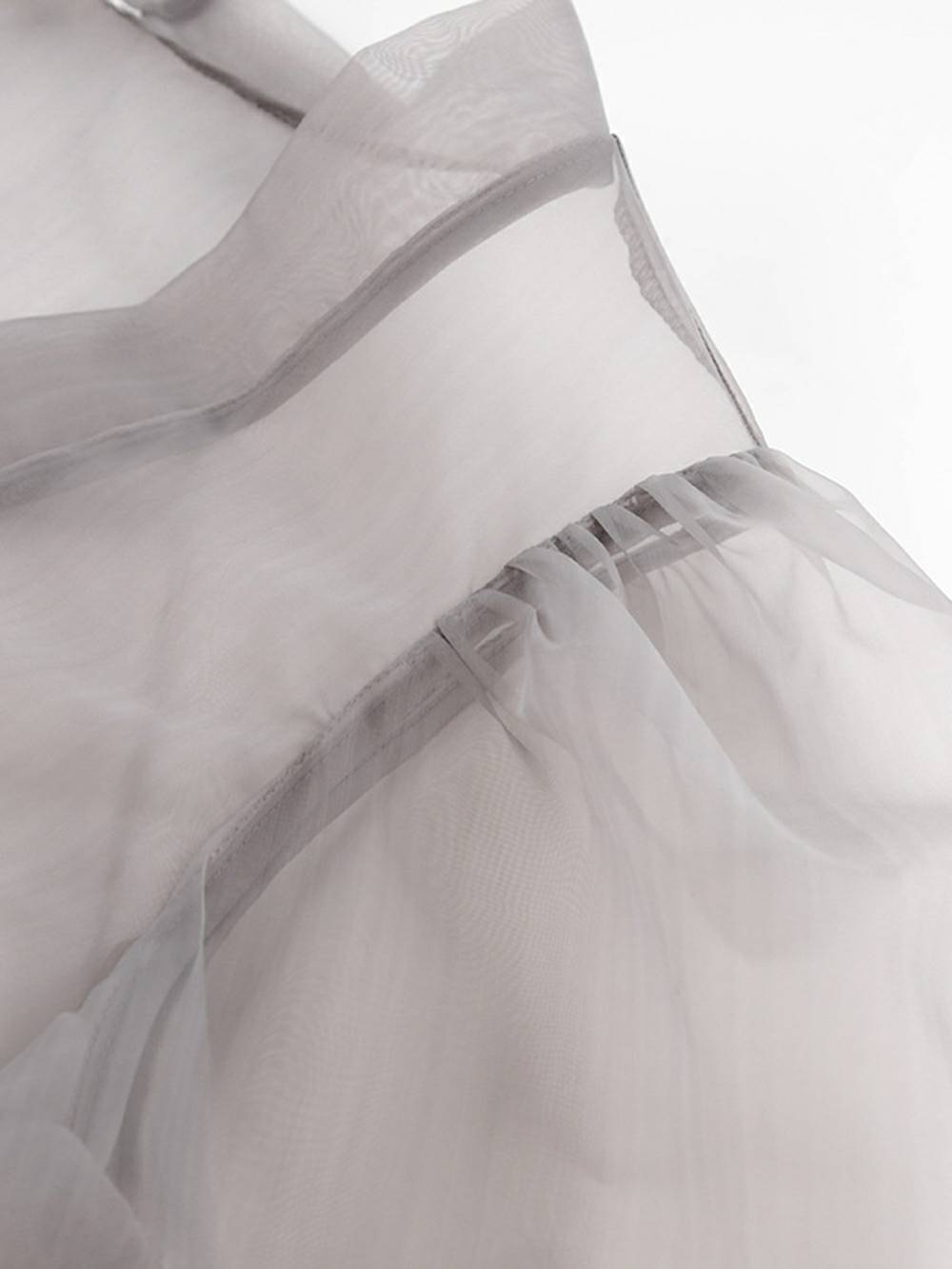 Sheer Sexy Top V Neck Long Puff Sleeves Bow Tie Chic Blouse