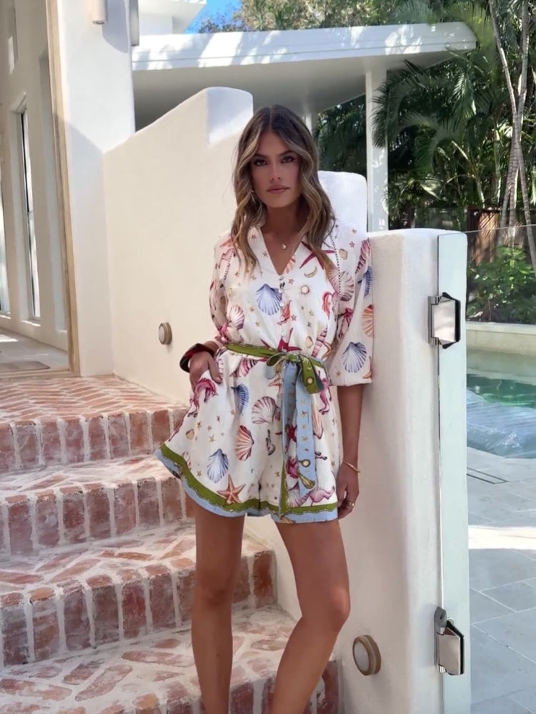 Style: Vacation lazy style, linen texture with tie, full of atmosphere