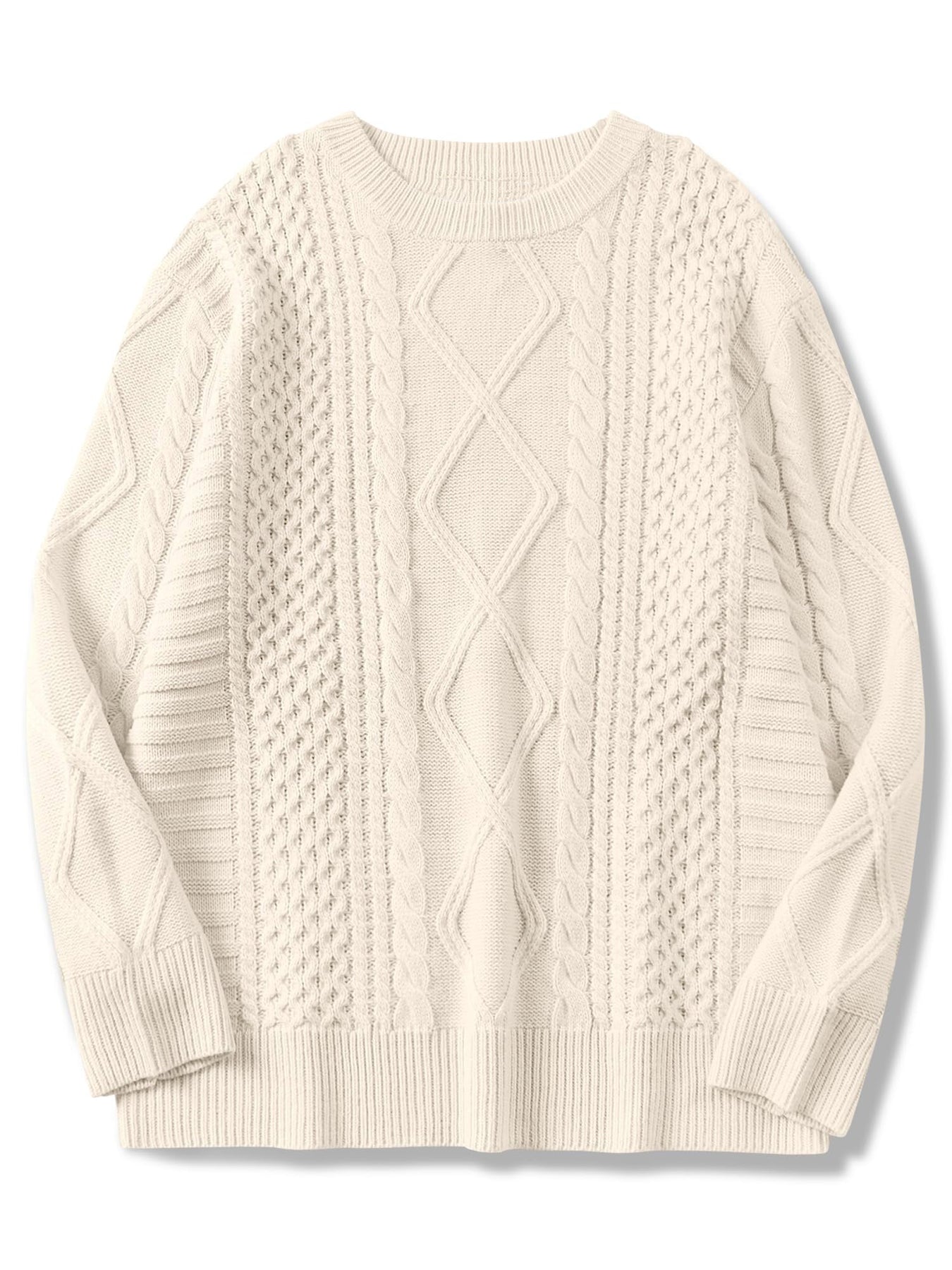 · Classic crewneck with long sleeves and a timeless cable knit design.