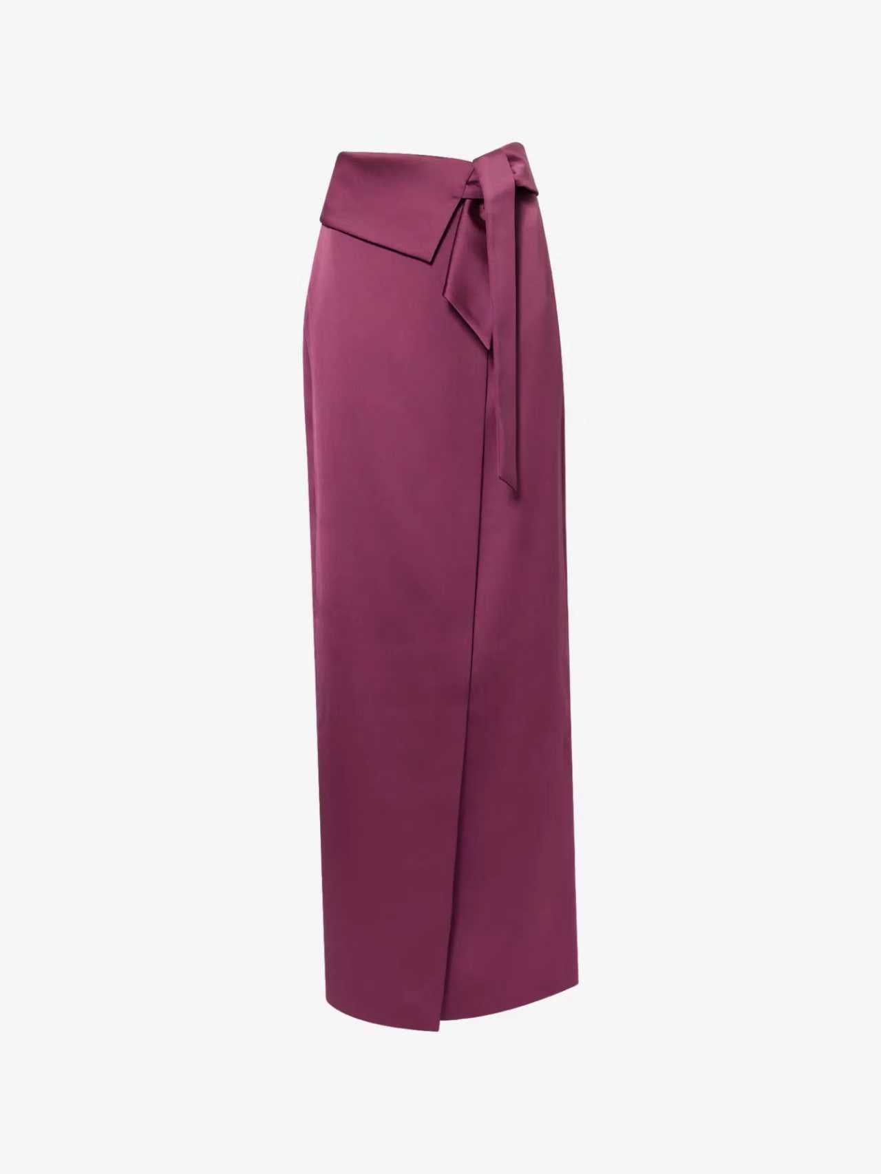• Satin wrap maxi skirt with tied waist for a flattering fit